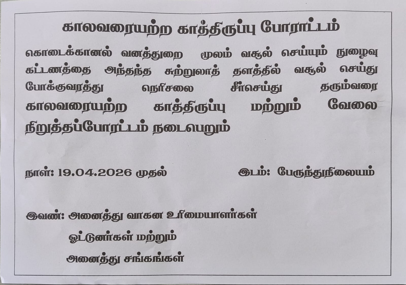 கொடைக்கானலில் வனத்துறையை கண்டித்து டாக்ஸி ஓட்டுனர்கள் வேலை நிறுத்தம்..,