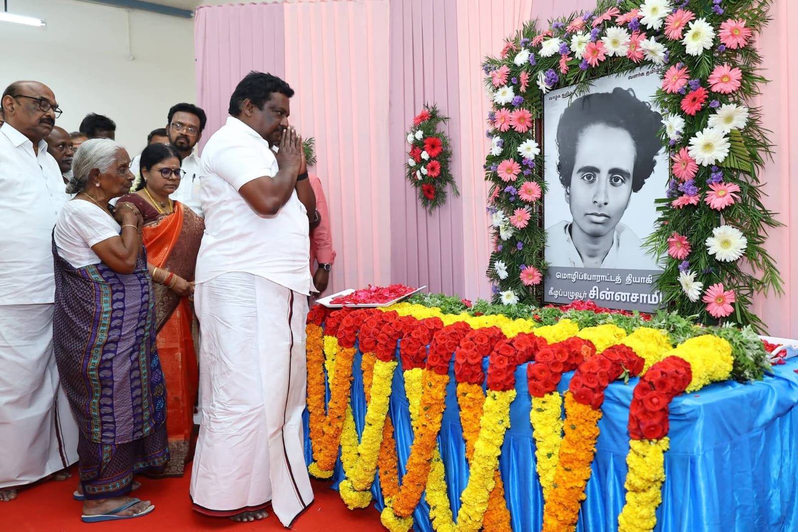 மொழிப்போராட்டத் தியாகி சின்னசாமி அரங்கத்தினை காணொளி வாயிலாக திறந்து வைத்த முதலமைச்சர்..,