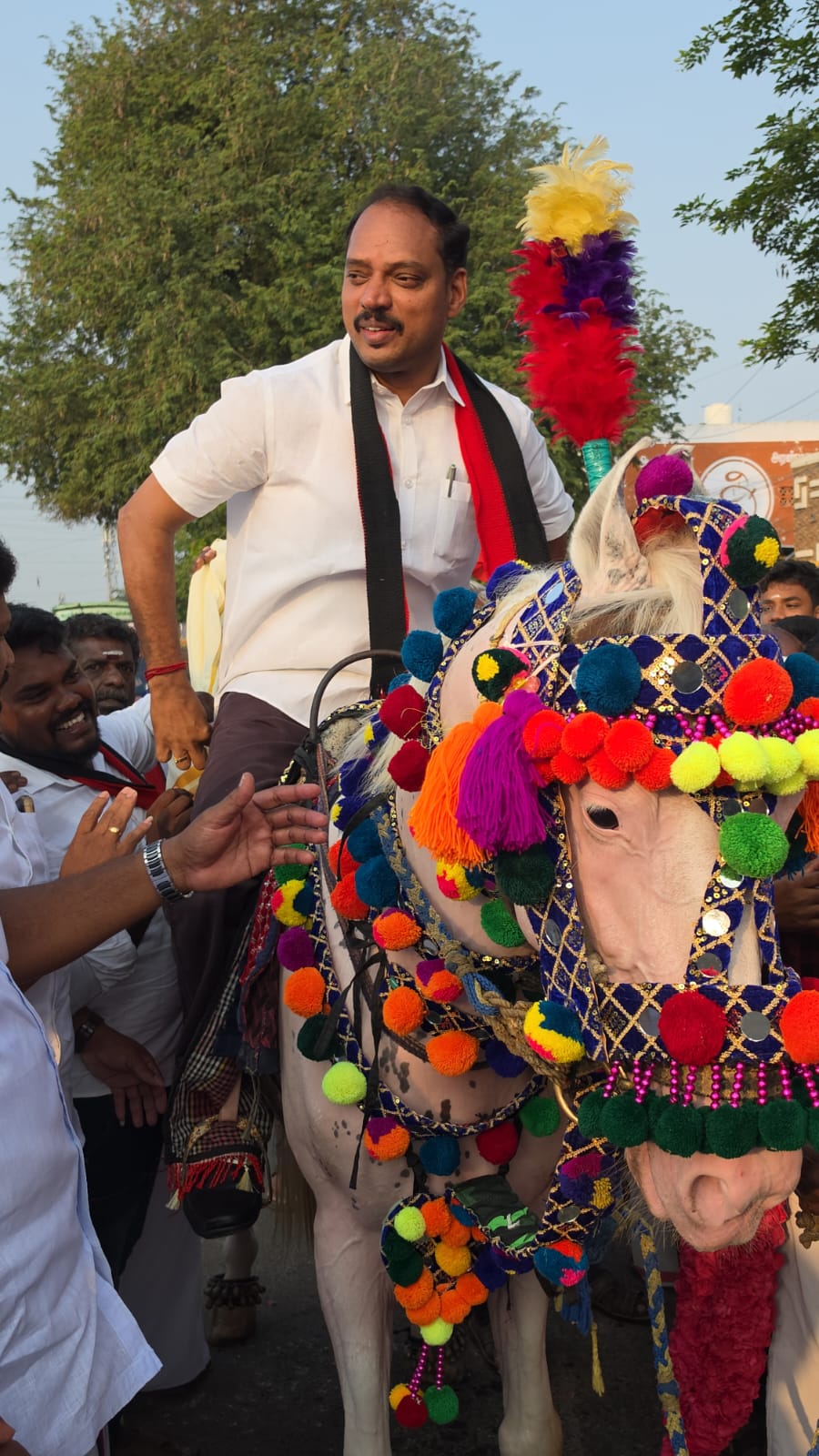 குதிரையின் மேல் வலம் வந்து வாக்கு சேகரித்த தொகுதி வேட்பாளர்..,