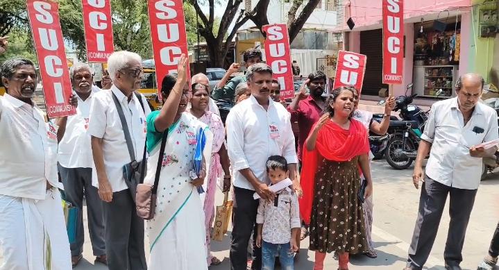 பல்வேறு கோரிக்கைகளை வலியுறுத்தி வேட்புமனு தாக்கல் செய்ய வந்த எஸ்யுசிஐ அமைப்பினர்..,
