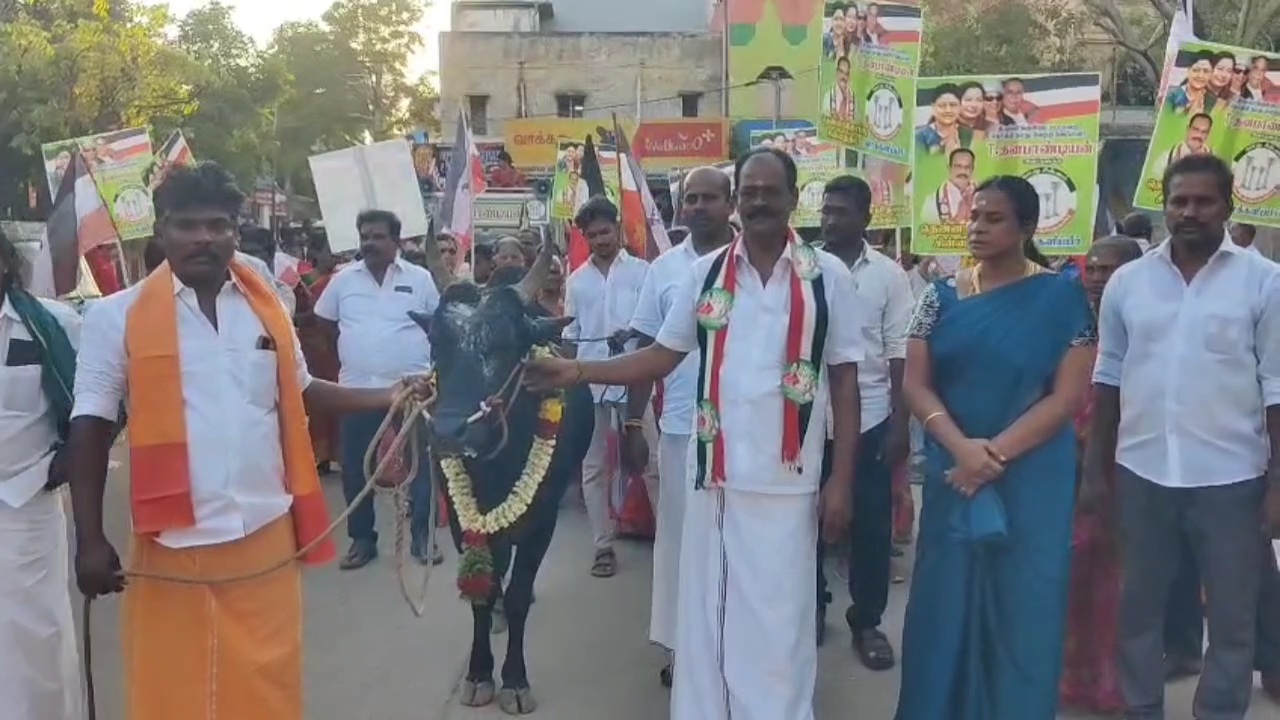 திருப்பரங்குன்றத்தில் சசிகலா ஆதரவு வேட்பாளருக்கு வேல் வழங்கிய சிவனடியார்கள்..,