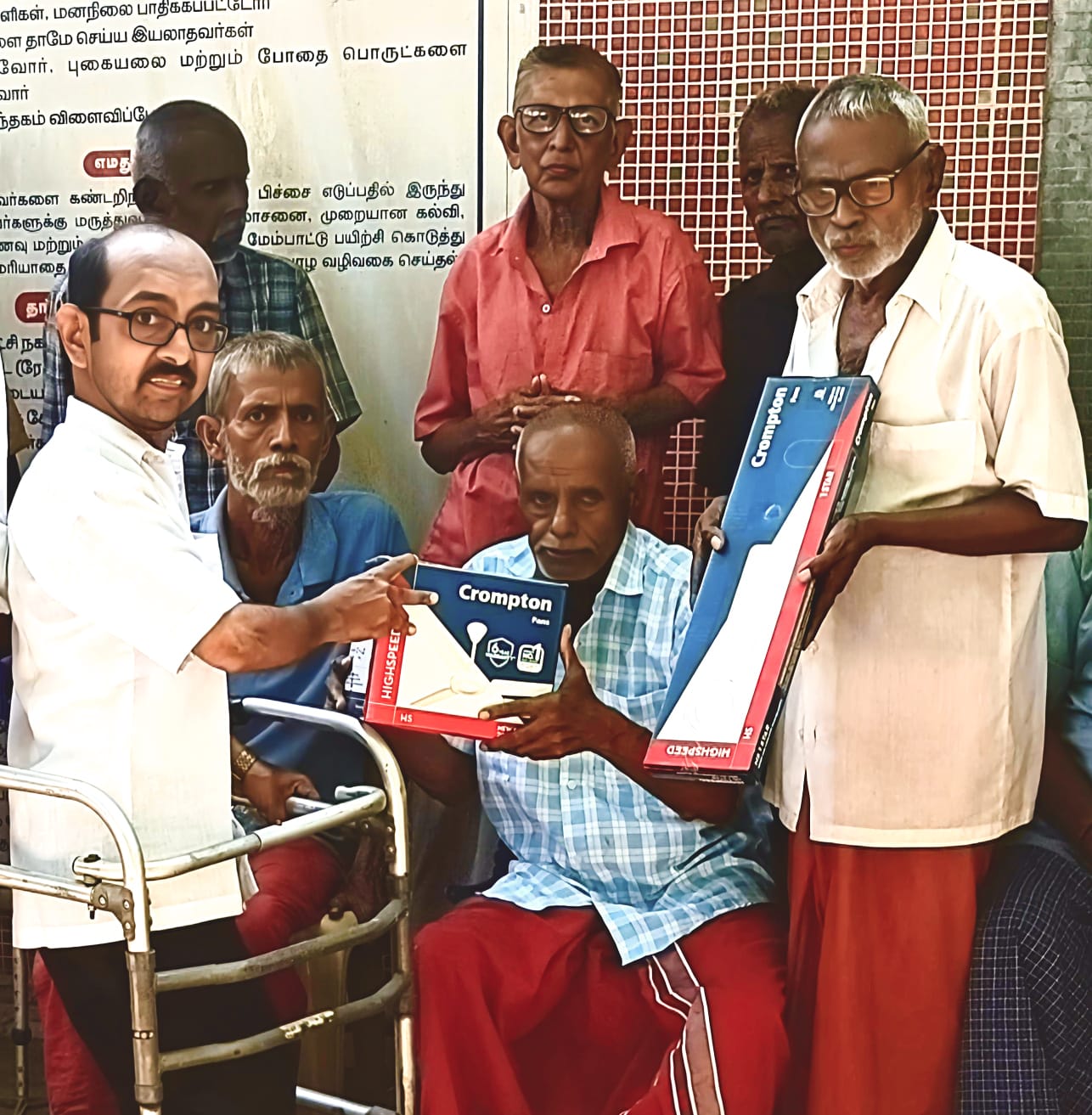 வெப்பத்தை குறைக்க முதியோர்களுக்கு மின் விசிறிகள்..,