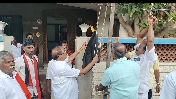 மத்திய அரசை கண்டித்து கருப்பு கொடியேற்றிய அமைச்சர் ரகுபதி..,
