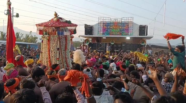 பின்னர் ஊர் மந்தையில் திரண்டு இருந்த ஆயிரக்கணக்கான பக்தர்கள் மத்தியில் சென்றாய பெருமாள் உற்சாகமாக ஆடிய வண்ணம் பக்தர்களுக்கு அருள் பாலித்தார்.