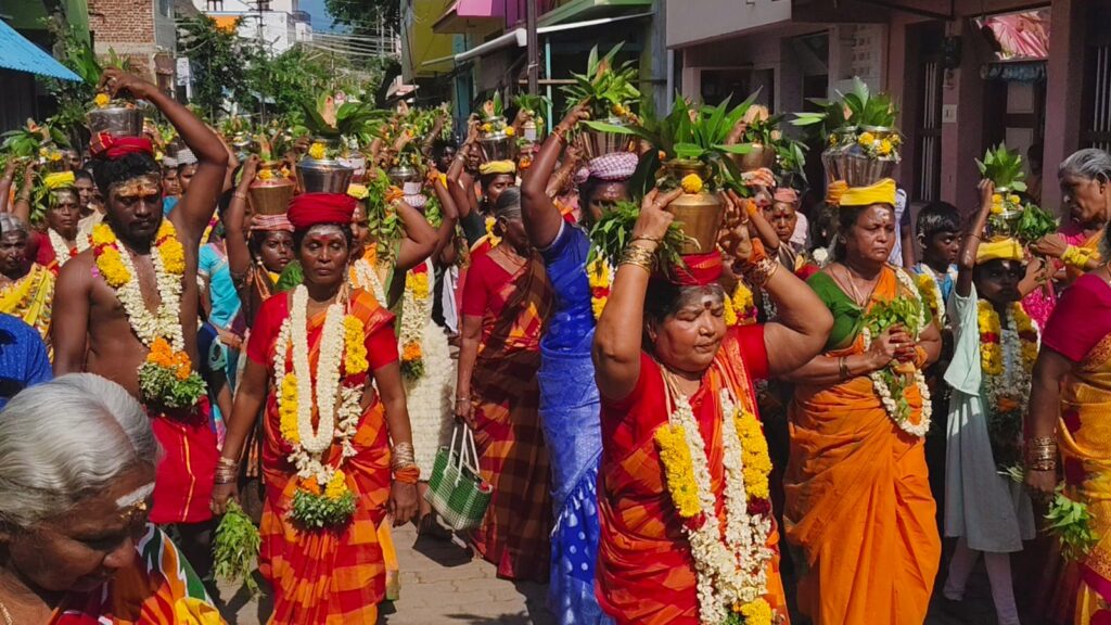 விருதுநகர் மாவட்டம் இராஜபாளையம் அருகே உள்ள கிருஷ்ணாபுரம் இந்து நாடார் உறவின் முறைக்கு பாத்தியப்பட்ட அருள்மிகு பத்திரகாளி அம்மன் கோவில் பங்குனி பொங்கல் திருவிழா பத்தாம் ஆண்டு பால்குடம் எடுக்கும் விழா நடைபெற்றது.