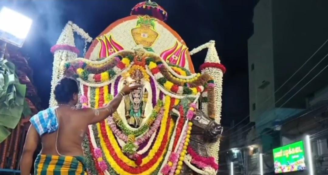 விருதுநகர் மாவட்டம் சிவகாசியில் பிரசித்தி பெற்ற அருள்மிகு ஸ்ரீமாரியம்மன் கோவில் உள்ளது. இங்கு பங்குனி பொங்கல் திருவிழா கடந்த 30-ம் தேதி முதல் கொடியேற்றத்துடன் துவங்கி விமர்சையாக நடைபெற்று வருகிறது. இவ்விழாவின் 7-ம் நாள் திருவிழாவை முன்னிட்டு, இன்று இரவு ஸ்ரீ மாரியம்மன் வெள்ளி ரிஷப வாகனத்தில் எழுந்தருளி திருவீதி வலம் வந்து பக்தர்களுக்கு அருள் பாலித்தார். மேலதாளம் முழங்க ரத வீதியில் அம்மன் ஊர்வலம் நடைபெற்றது. தில்லானா சித்தர்கள் அம்மன் ஊர்வலத்தில் கலந்து கொண்டனர். இதற்கான ஏற்பாடுகளை விழா கமிட்டினர் செய்துள்ளனர்.