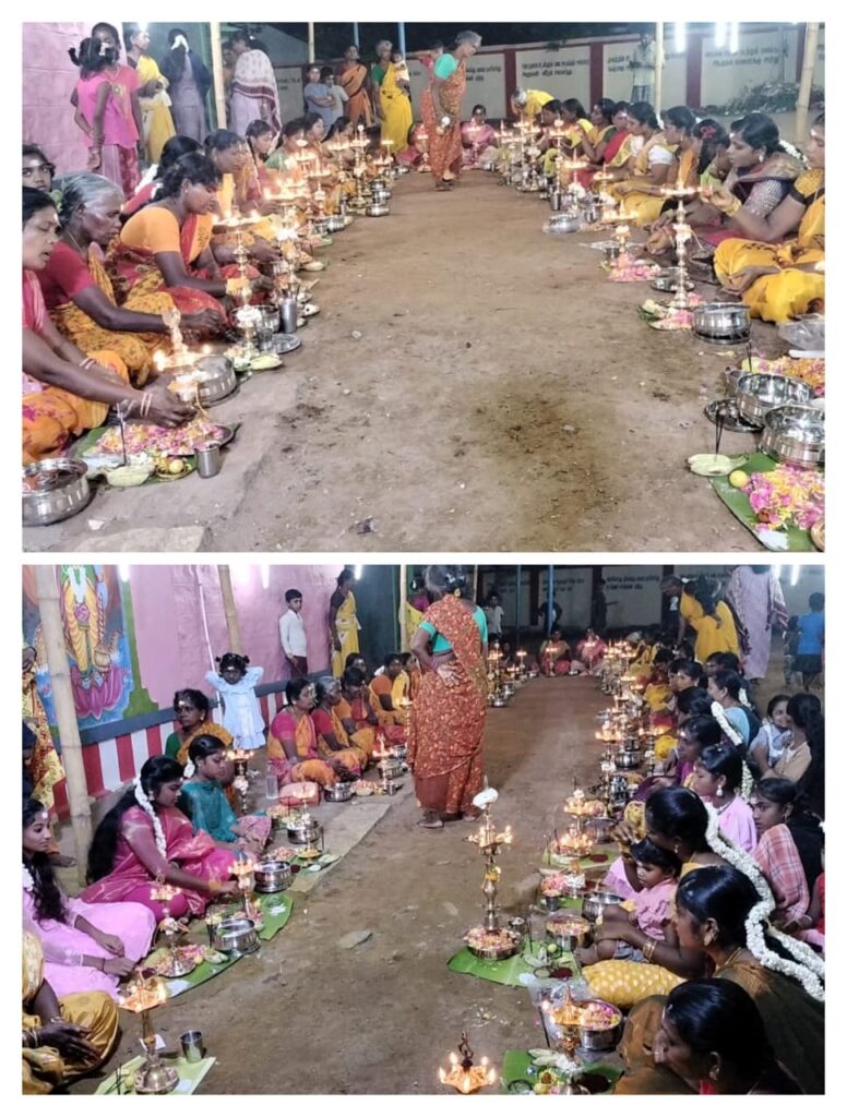 இந்நிலையில் பொங்கல் திருவிழா மூன்று நாட்கள் நடைபெறும் திருவிழாவில் முதல் நாளான இன்று அருள்மிகு பத்திரகாளியம்மன் கோவிலில் திருவிளக்கு பூஜையில் 100 க்கும் மேற்பட்ட பெண்கள் கலந்து கொண்டு உலக நன்மைக்காகவும், குடும்ப நன்மைக்காகவும், மழை வேண்டியும்,விவசாயம் செழிக்க வேண்டியும் குத்து விளக்கு ஏற்றி மஞ்சள்கயிறு, வாழைப்பழம், எலுமிச்சை,மலர்கள், மஞ்சள்,சந்தனம் குங்குமம் வைத்து வழிபட்டனர்.