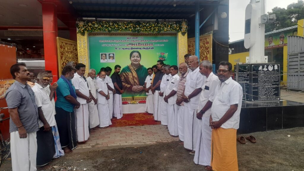 மதுரை புறநகர் மேற்கு மாவட்டம் வாடிப்பட்டி பேரூர் அதிமுக சார்பாக முன்னாள் தமிழ்நாடு முதலமைச்சரும் அதிமுக பொதுச் செயலாளருமான ஜெயலலிதாவின் 9ம் ஆண்டு நினைவு தினத்தை ஒட்டி பேரூர் அதிமுக செயலாளர் அசோக் தலைமையில் மாலை அணிவித்து மரியாதை செய்யப்பட்டது.
