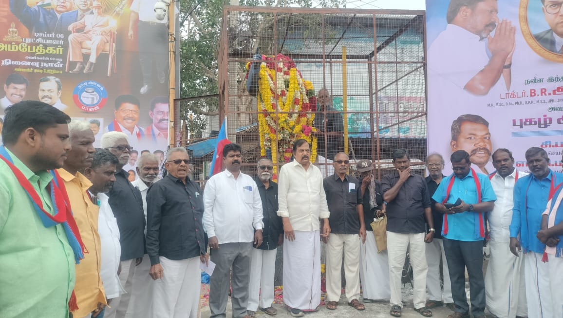 இந்நிலையில் திராவிடர் கழகம், விசிக உள்ளிட்ட அனைத்து கட்சியினர் பெரம்பலூர் பழைய பேருந்து நிலையத்தில் உள்ள அம்பேத்கர் திருவுருவ சிலைக்கு மாலை அணிவித்து மரியாதை செலுத்தி புகழஞ்சலி செலுத்தப்பட்டது.