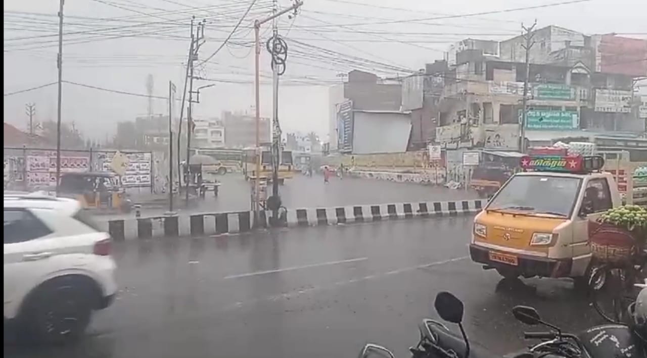 கரூரில் கடந்த சில நாட்களாக 102 டிகிரிக்கு மேல் வெயிலின் தாக்கம் அதிகமாக காணப்பட்டதை அடுத்து இன்று பெய்த மழை வெப்பத்தை தனித்து குளிர்ச்சியான சூழல் நிலவுவதால் பொதுமக்கள் மகிழ்ச்சி அடைந்துள்ளனர்.