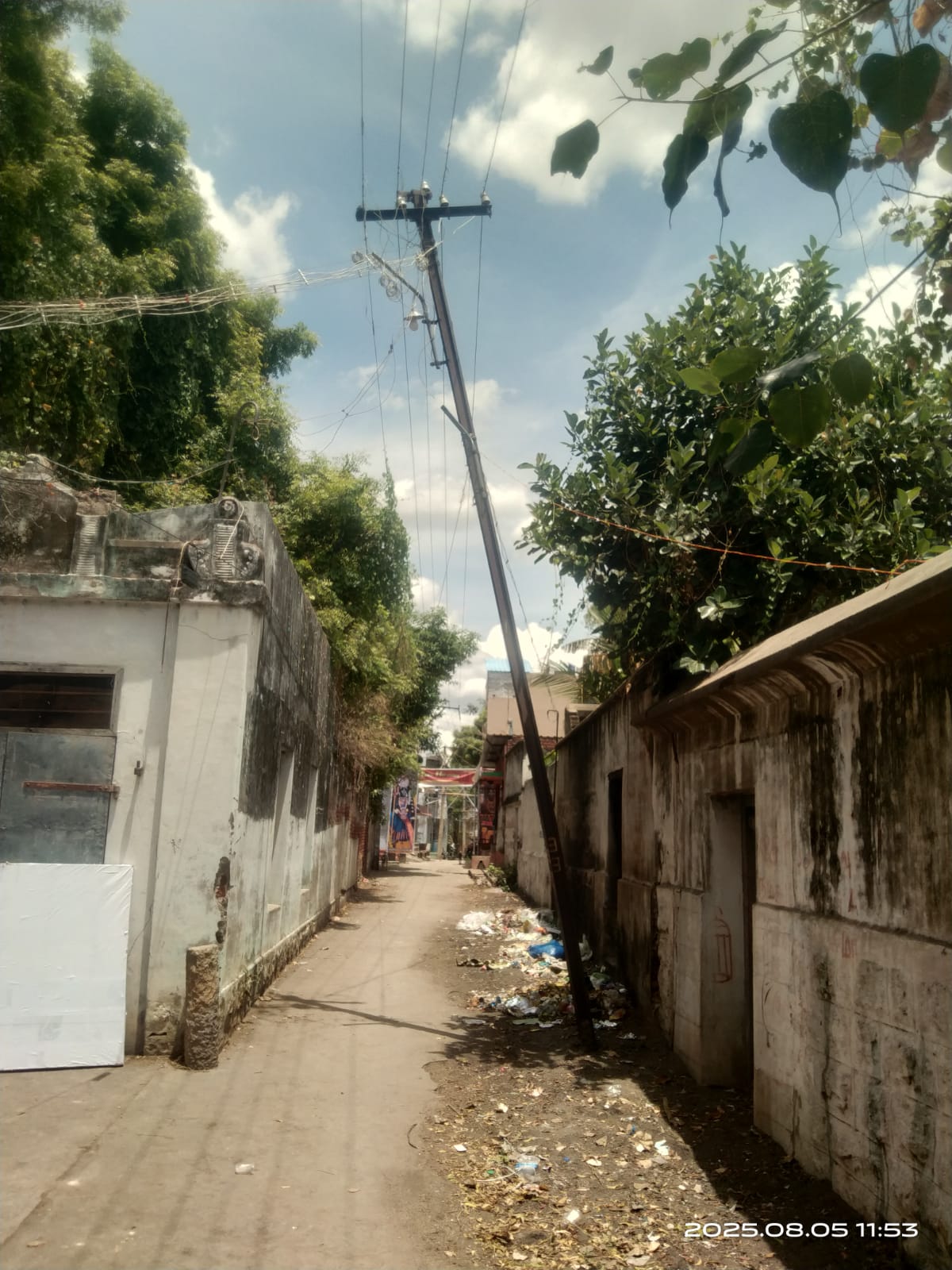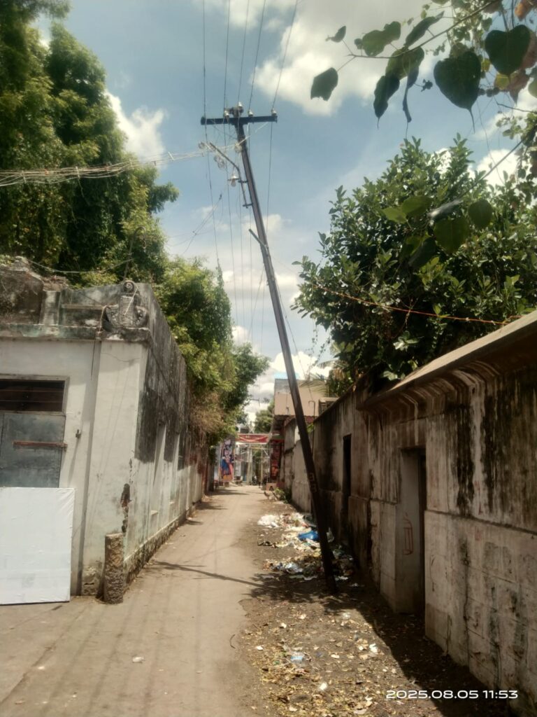 பொதுமக்கள் அதிகம் வசிக்கும் நடுத்தெரு பகுதியில் சாய்ந்த நிலையில் பல மாதங்களாக மின்கம்பம் உள்ளதாகவும் பலமுறை மின்வாரிய பணியாளர்களிடம் கூறியும் மின்கம்பத்தை சரி செய்ய எந்த நடவடிக்கையும் எடுக்கவில்லை. மழைக்காலங்களில் ஆபத்தை விளைவிக்கக் கூடிய நிலையில் உள்ள மின்கம்பத்தை உடனடியாக சரி செய்ய வேண்டுமென இந்த பகுதி பொதுமக்கள் மின்வாரிய அதிகாரிகளுக்கு கோரிக்கை விடுத்துள்ளனர்.