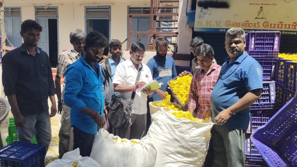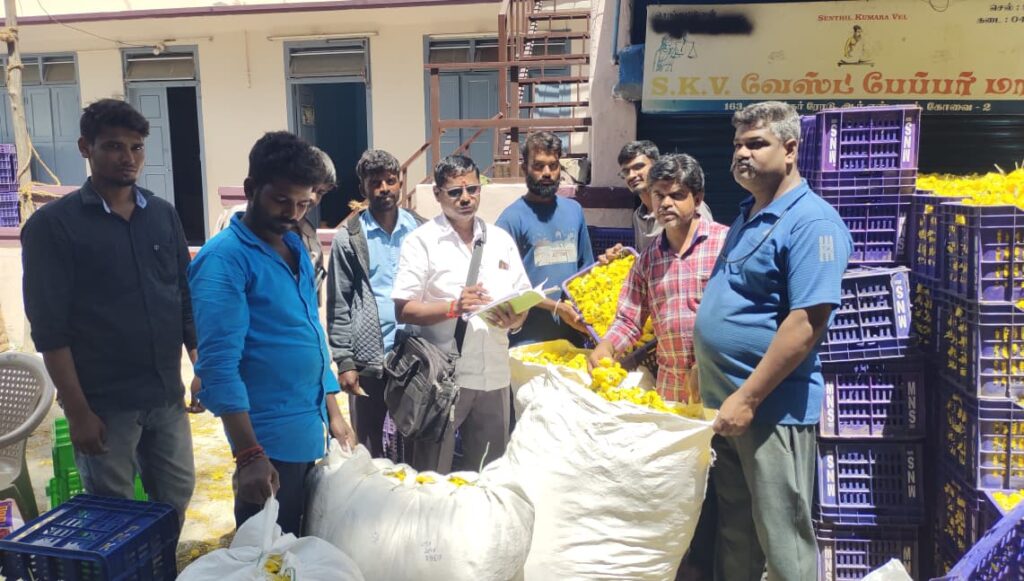 கோவை பூ மார்க்கெட்டில் பொருட்களை வாங்கி சென்ற மக்கள்..,