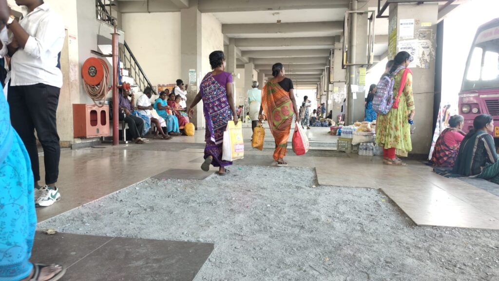 பொலிவுரு நகரத் திட்டத்தின் கீழ் கட்டப்பட்ட நகரப் பேருந்து நிலையமாக இருக்கக்கூடிய மதுரை ரயில் நிலையம் அருகே உள்ளது தான் பெரியார் பேருந்து நிலையம், கடந்த நான்காண்டுகளுக்கு முன்பு பொதுமக்கள் பயன்பாட்டிற்கு வந்த நிலையில் தற்போது நடைமேடைகளில் இருக்கக்கூடிய டைல்ஸ்கள் உடைந்து, ஆங்காங்கே கழிவுநீர் தேங்கியும் , பயணிகள் குடிக்கக்கூடிய சுத்திகரிக்கப்பட்ட குடிநீர் தொட்டியில் தண்ணீர் இல்லாத காலி பாட்டல்களும் குப்பைகளும் காட்சியளிக்கும் நிலை உள்ளது.