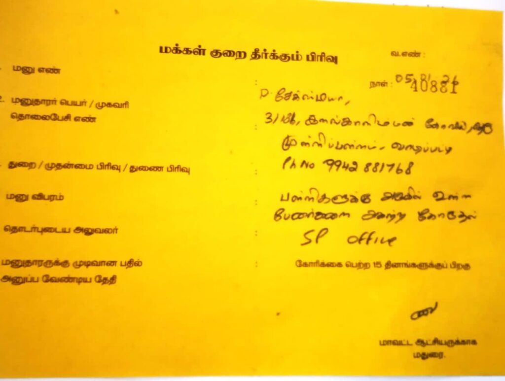 மதுரை மாவட்டம் சோழவந்தான் பேரூராட்சிக்கு உட்பட்ட பல்வேறு பகுதிகளில் பொதுமக்கள் மற்றும் போக்குவரத்திற்கு இடையூறாகவும் பள்ளி மாணவ மாணவிகளுக்கு இடையூறாகவும் உள்ள பிளக்ஸ் பேனர்களை அகற்ற வலியுறுத்தி மதுரை மாவட்ட ஆட்சியர் அலுவலகத்தில் நடைபெற்ற மக்கள் குறைதீர்க்கும் பிரிவில் மனு அளிக்கப்பட்டுள்ளது.