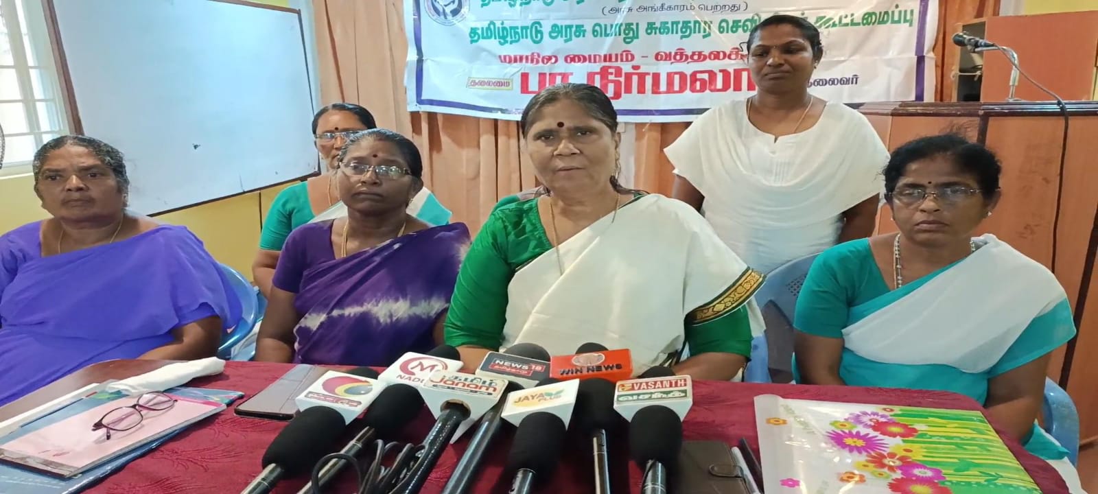 பொது சுகாதாரத் துறையில் தடுப்பூசி பணியில் கொண்டு வரப்பட்டுள்ள மாற்றங்கள் குறித்து தமிழ்நாடு அரசு கிராம சுகாதார செவிலியர் சங்கம் மற்றும் தமிழ்நாடு அரசு பொது சுகாதாரத்துறை செவிலியர் கூட்டமைப்பு மாநில தலைவர் பா.நிர்மலா செய்தியாளர்களை சந்தித்து பேசும் போது,