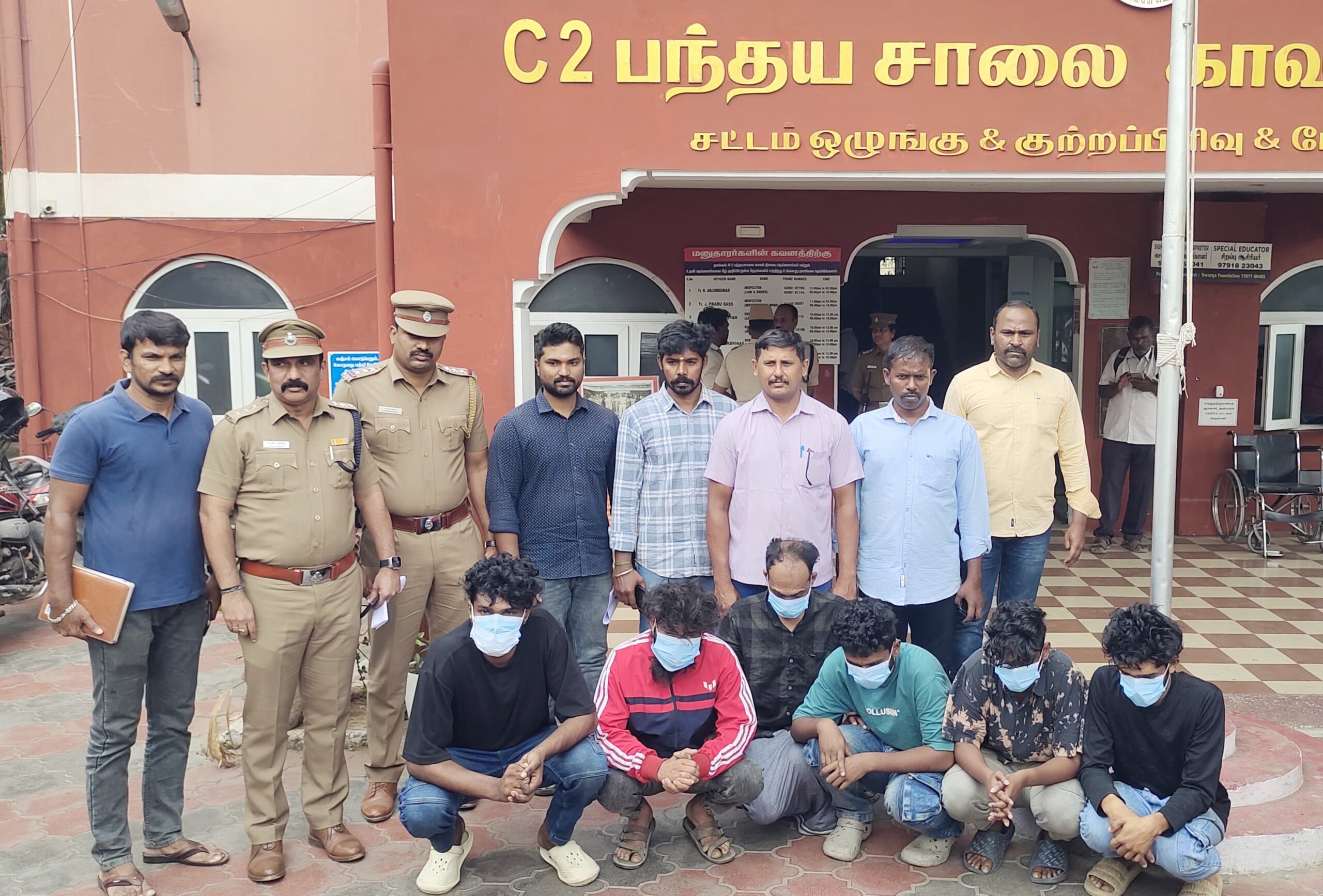 கைது செய்யப்பட்டவர்கள் கேரள மாநிலம் கொல்லத்தைச் சேர்ந்த அஸ்வின் @ மாத்தான் (25), ரியாஸ் (32), திருவனந்தபுரத்தைச் சேர்ந்த அமல் (24), பாலக்காட்டைச் சேர்ந்த அப்துல் சலீம் (46), ஆலப்புழையைச் சேர்ந்த அன்சாத் (23) மற்றும் நீலகிரி மாவட்டம் கூடலூரைச் சேர்ந்த அசாருதீன் (28) ஆவர்.