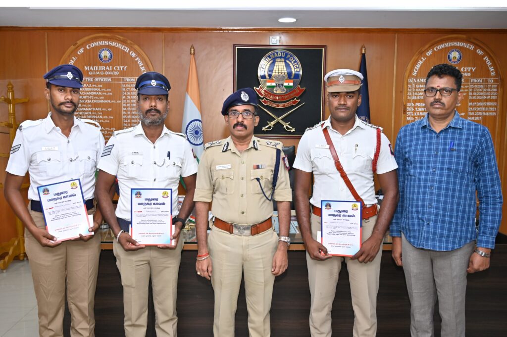 வாகன சோதனையில் போது சிறப்பாக செயல்பட்டு திருட்டு வாகனத்தை பறிமுதல் செய்து மாட்டுத்தாவணி காவல் நிலையத்தில் ஒப்படைத்தனர். வாகனத்தை பறிமுதல் செய்ய உதவிய உதவி காவல் ஆய்வாளர் மற்றும் காவலர்களுக்கு மதுரை மாநகர ஆணையாளர் முனைவர் லோகநாதன் பாராட்டு தெரிவித்து வெகுமதி வழங்கினார்.