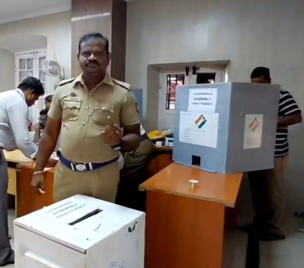 திண்டுக்கல் மாவட்டத்தில் உள்ள 7 சட்டமன்றத் தொகுதிகளிலும் நேற்று 2,880 காவல்துறையினர் தபால் ஓட்டு பதிவு நாளை மாலை 5 மணி வரை தபால் ஓட்டு பதிவு நடைபெறுகிறது.