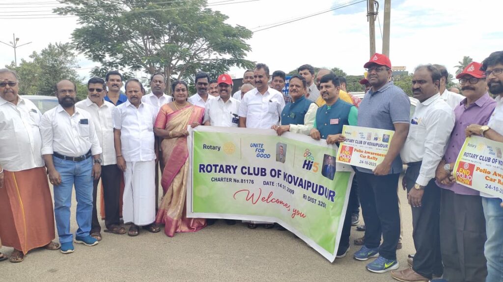 20க்கும் மேற்பட்ட கார்களின் ஊர்வலம் ஐயப்பன் கோவில், பஸ் திருப்பம் உள்ளிட்ட பகுதிகள் வழியே மீண்டும் கிரவுண்டை வந்தடைந்தது. கோவைபுதூர் ரோட்டரி கிளப் தலைவர் குருபிரசாத் கூறுகையில்,” ஆண்டுதோறும் அக். 24ம் தேதி சர்வதேச போலியோ நோய் ஒழிப்பு விழிப்புணர்வு தினமாக ரோட்டரி சங்கத்தால் கடைபிடிக்கப்படுகிறது. மக்களிடம் விழிப்புணர்வு ஏற்படுத்த இந்நிகழ்ச்சி ஒரு வாய்ப்பாக அமைந்துள்ளது,” என்றார். இத்திட்டத்தின் மாவட்ட தலைவர் சீனிவாஸ் ஸ்ரீராமன், துணை கவர்னர் ஜெயகாந்தன், கோவைபுதூர் கிளையின் செயலாளர் ராம்பிரசாத்,திட்ட தலைவர் சரிதா உள்பட பலர் பங்கேற்றனர்.