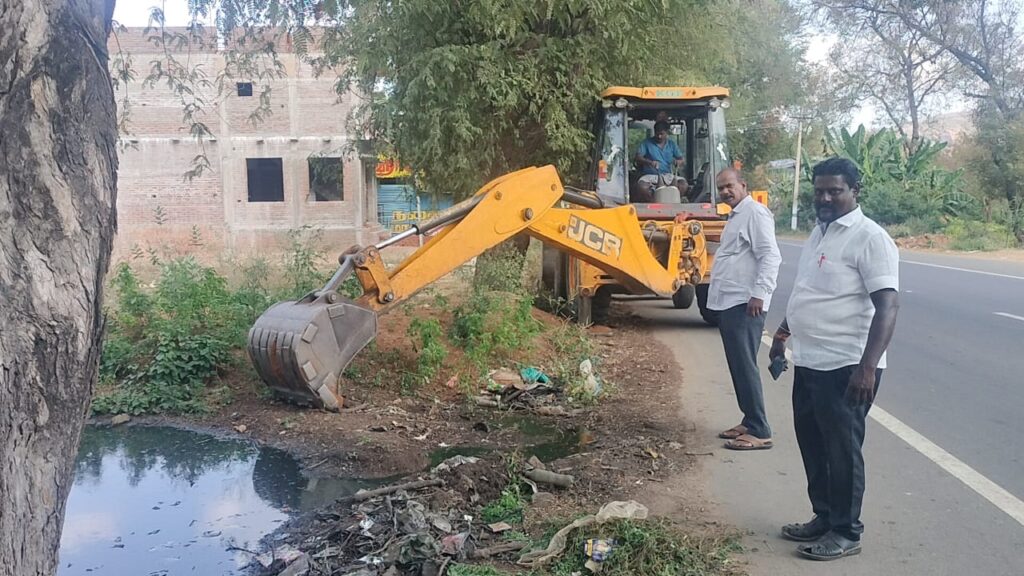 இன்று உசிலம்பட்டி ஊராட்சி ஒன்றிய ஆணையாளர் பாண்டி தலைமையில் அதிகாரிகள் ஆய்வு செய்து ஜேசிபி இயந்திரம் மூலம் கழிவு நீரை அகற்றி வழிவகை செய்து தற்காலிகமாக 8 அடி உயரம் இரண்டரை மீட்டர் அகலத்திற்கு உறிஞ்சி குழி அமைக்கும் பணி நடைபெற்று வருகிறது.