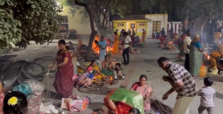 சிவகாசியில் பிரசித்தி பெற்ற பத்திரகாளியம்மன் கோவில் வளாகத்தில் சுமார் 300- பெண்கள் தங்கள் குடும்பத்துடன் பொங்கல் வைத்து, கிடாவெட்டி அம்மனுக்குப் படையலிட்டு பத்ரகாளியம்மனை வணங்கி வழிபாடு செய்தனர். முன்னதாக மேள தாளத்துடன், தலையில் பொங்கல் பானைசுமந்தபடி, குடும்பத்தோடு நகரின் முக்கிய வீதிகளின் வழியாக ஊர்வலமாகச் சென்ற பெண்கள், பத்ரகாளியம்மன் கோவில் வளாகத்தை வந்தடைந்து பின்னர் வரிசையாக பொங்கல் பானையில் பொங்கல் வைத்து குலவையிட்டு வணங்கி அம்மனை வழிபட்டனர்.