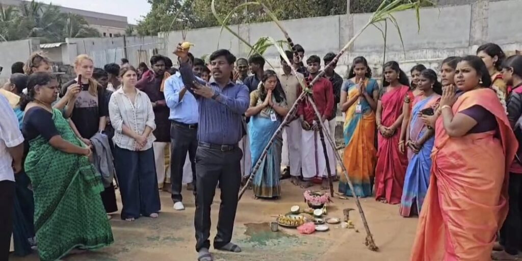 கல்லூரியில் பயிலும் வெளிநாட்டு மாணவர்களும் பொங்கல் பண்டிகை நிகழ்ச்சியில் கலந்து கொண்டு பாரம்பரிய முறைப்படி பொங்கல் வைத்து கொண்டாடினர்.