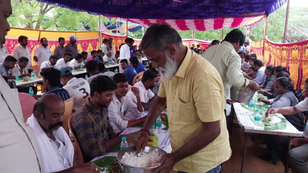 இதனை ஒட்டி பொன் மகா முனீஸ்வரர் திருக்கோவிலில் இன்று காலை 20 க்கும் மேற்பட்ட ஆடுகள் வெட்டப்பட்டு 2 ஆயிரத்திற்கும் மேற்பட்ட பக்தர்களுக்கு கறிவிருந்து அளிக்கப்பட்டது.