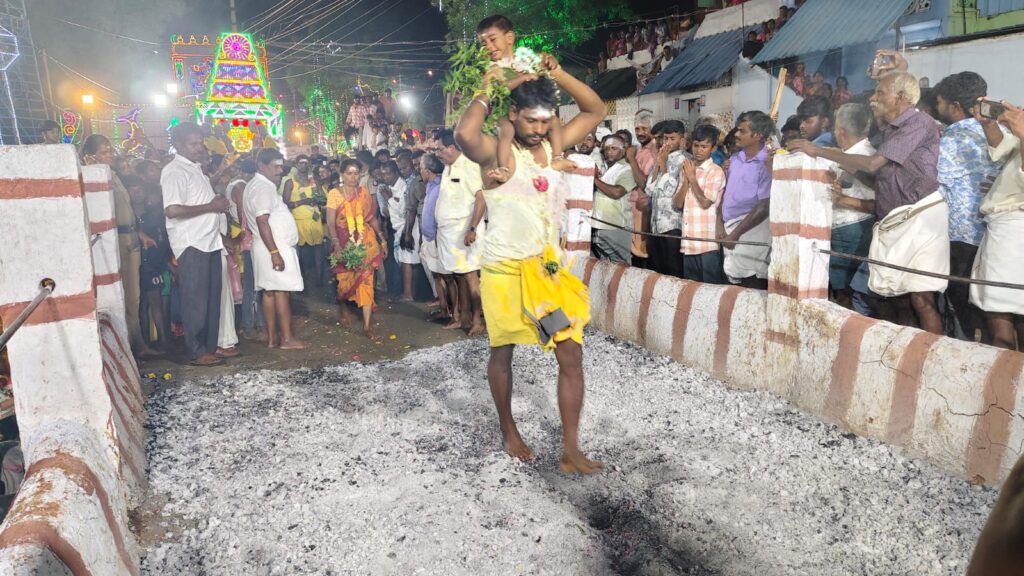 ஒவ்வொரு நாளும் கும்மி பாட்டு சாமி வழிபாடு நடைபெற்றது. 11ம் நாள் திருவிழாவான முளைப்பாரி திருவிழாவில் 1000 க்கும் மேற்பட்ட பெண்கள் கலந்து கொண்டு முளை பாரி எடுத்து ஊர்வலமாக வந்து கோவிலில் வைத்து கும்மியடித்து வழிபாடு செய்தனர். அதைத் தொடர்ந்து 12ஆம் நாள் திருவிழா இன்று அதிகாலையில் அலங்கரிக்கப்பட்ட சப்பரத்தில் சாமி வீதி உலா நடைபெற்றது. அதை தொடர்ந்து பின்வந்த பக்தர்கள் அக்னி சட்டி எடுத்தும் வேல் குத்தியும் பூக்குழி இறங்கி தங்களுடைய நேர்த்திக்கடனை நிறைவேற்றினர்.