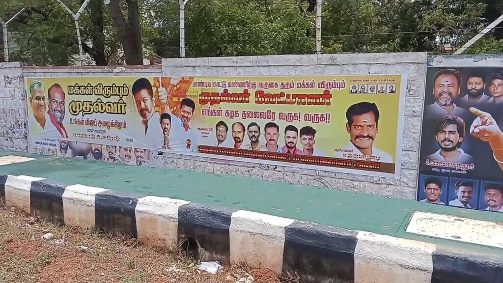 முதல்வர் வேட்பாளரை தமிழகத்தின் அடுத்த முதல்வரே என விஜயை முதல் வராக துடிக்கும் த வெ க கட்சியினரின் பரபரப்பு போஸ்டர்களால் மதுரை விமான நிலைய சாலை பெருங்குடி வலையங்குளம், பாரப்பத்தி, எலியார்பத்தி, ஆவியூர் வரை த வெ க கட்சியின் தொண்டர்களால் பரபரப்பு போஸ்டர் ஒட்டப்பட்டு இருக்கிறது .