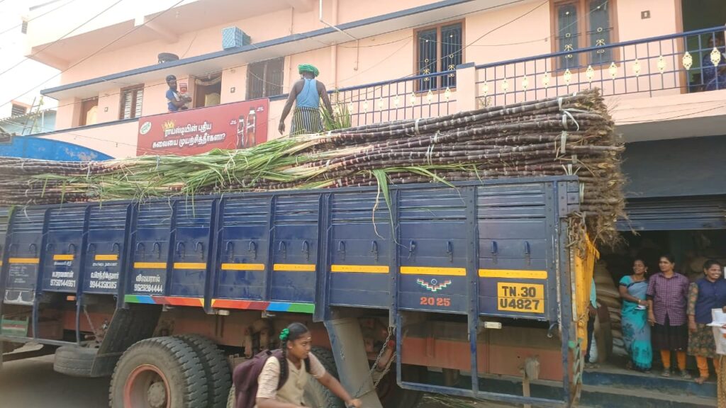 மதுரை மாடக்குளம் மெயின் ரோடு சர்ச்சு அருகே இன்று காலை ஆறு மணி அளவில் ரேஷன் கடைகளுக்கு பொங்கல் தொகுப்பு கொடுப்பதற்காக கரும்பு ஏற்றி வந்த லாரி அளவுக்கு அதிகமாக மேலே ஏற்றி இருந்ததால் மின் கம்பத்தில் உரசியது.