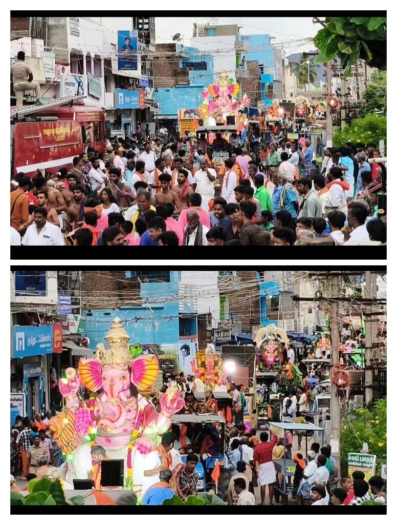 இதே போல் இந்த ஆண்டும் நேற்று விநாயகர் சதுர்த்தியை முன்னிட்டு விநாயகர் சிலைகளை பிரதிஷ்டை செய்து வழிபட்ட மக்கள் இன்று விநாயகர் சிலைகளை மேள தாளத்துடன் எழுமலையின் முக்கிய வீதிகளின் வழியாக எடுத்து வந்து ஆரவாரத்துடன் எழுமலை பெரிய குளம் கண்மாயில் கரைத்தனர்.,