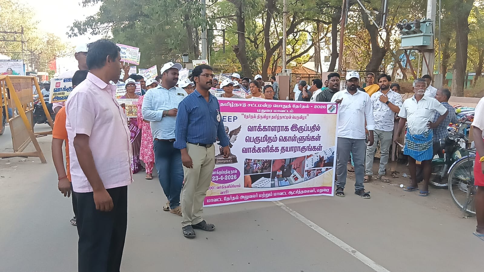 இந்த ஊர்வலம் மேள தாளங்கள் முழங்க பொய்க்கால் குதிரை ஆட்டங்களுடன் வாக்காளராக இருப்பதில் பெருமிதம் கொள்ளுங்கள் வாக்களிக்க தயாராகுங்கள், வாக்கு விற்பனைக்கு அல்ல, 100% தவறாமல் வாக்களிப்போம் போன்ற வாசகங்கள் அடங்கிய பதாகைகளை கையில் ஏந்தியவாறு பொதுமக்களுக்கு துண்டு பிரசுரங்கள் வழங்கி விழிப்புணர்வை ஏற்படுத்தினர்.