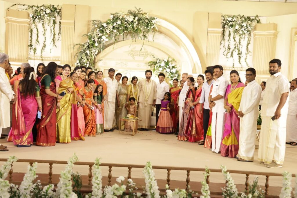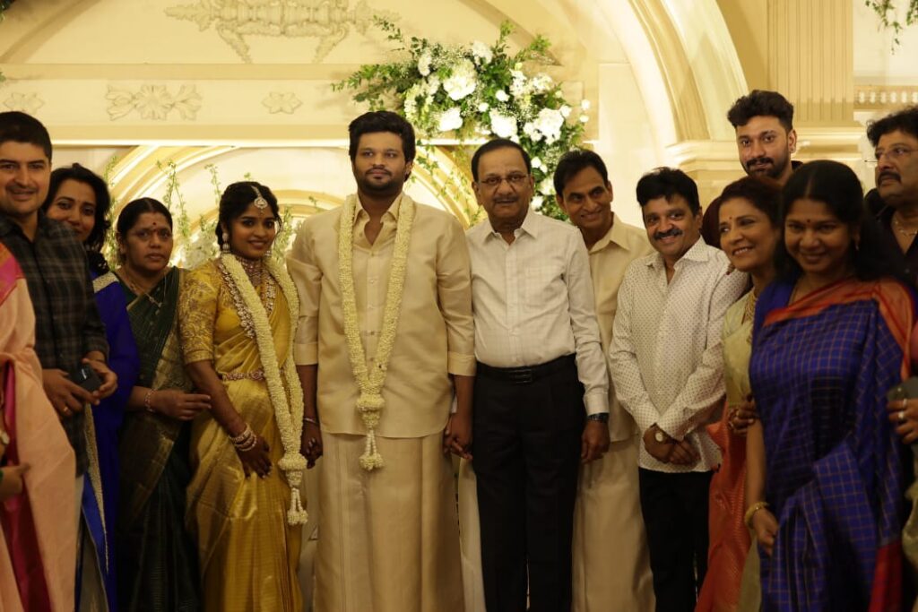 எஸ்கேப் ஆர்டிஸ்ட் மதன், இயக்குநர் ரவிகுமார், பாடலாசிரியர் விவேக், நடிகர் பாலசரவணன், நடிகை தேஜு அஸ்வினி, தயாரிப்பாளர் அருண் விஸ்வா, நடிகை காயடு லோகர், நடிகை சம்யுக்தா, விஸ்வநாதன், நடிகர் பிரேம் உள்ளிட்ட பல அரசியல் பிரபலங்கள் மற்றும் நட்சத்திர நடிகர்கள் பலர் கலந்துக் கொண்டு மணமக்களை வாழ்த்தினர்.