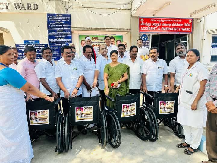 சிவகாசி மேயர் அரசு மருத்துவமனைக்கு உதவி தமிழக முதலமைச்சர் மு.க.ஸ்டாலின் அவர்களின் 72_ஆவது பிறந்தநாளை முன்னிட்டு, விருதுநகர் வடக்கு மாவட்ட சிறுபான்மையினர் நல உரிமை பிரிவு சார்பில் சிவகாசி அரசு மருத்துவமனைக்கு வீல்சேர் வழங்கும் நிகழ்ச்சி நடைபெற்றது. இதில் சிவகாசி மாநகர மேயர் சங்கீதா இன்பம், சிவகாசி மாநகர திமுக செயலாளர் உதயசூரியன், சிறுபான்மை அணி அமைப்பாளர் அணித்தலைவர் மரைக்காயர், துணைத்தலைவர் துணை அமைப்பாளர்கள் மாநகர நிர்வாகிகள், கட்சி நிர்வாகிகள் அனைவரும் கலந்து கொண்டனர்.