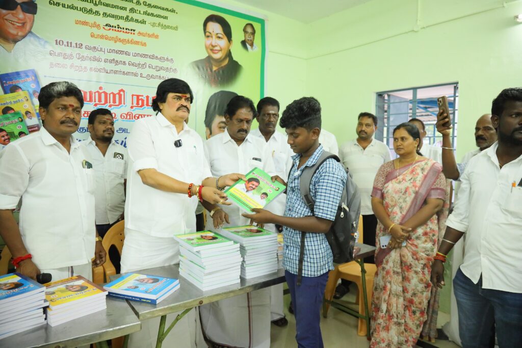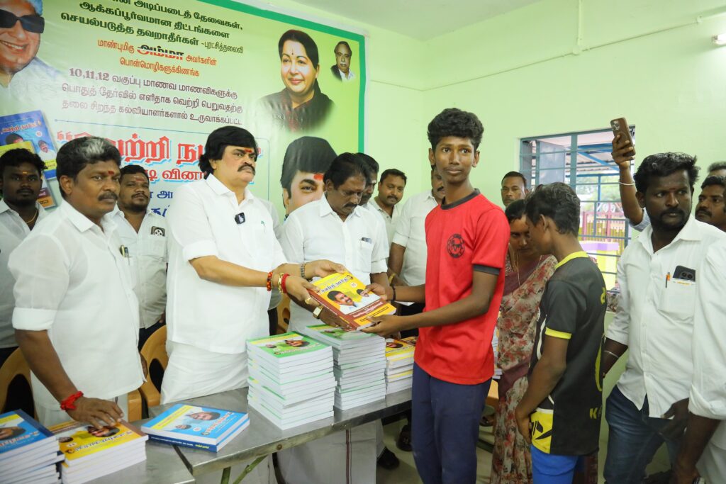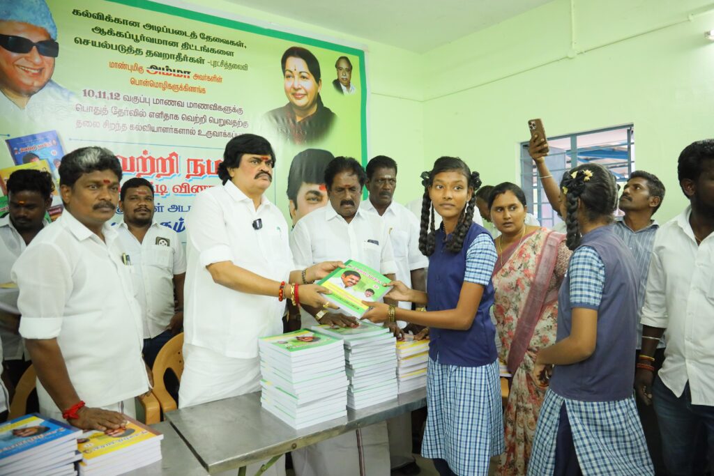 சிவகாசி சட்டமன்றத் தொகுதிக்குட்பட்ட கிராமப்புறங்களின் பகுதிகளில் 10,11 மற்றும் 12 -ம் வகுப்புகளில் கல்வி பயின்று வரும் மாணவ, மாணவிகள் பொதுத் தேர்வுகளில் எளிதாக வெற்றி பெறுகின்ற விதமாக “வெற்றி நமதே” என்ற தலைப்பிலான வினாடி- வினா தொகுப்புகளடங்கிய விலையில்லா கல்வி வழிகாட்டி புத்தகம் அதிமுக சார்பில் வழங்கப்பட்டு வருகிறது.