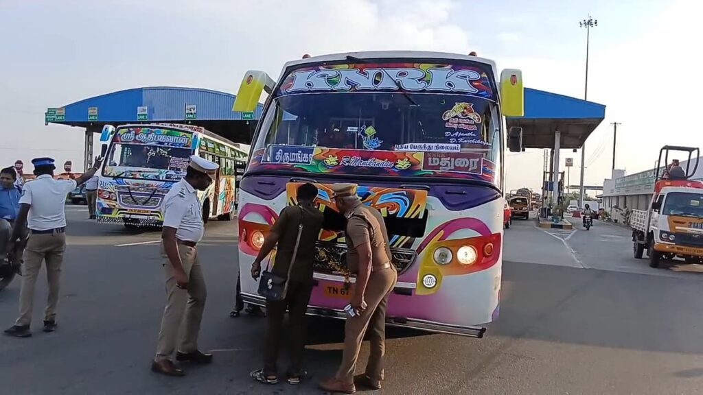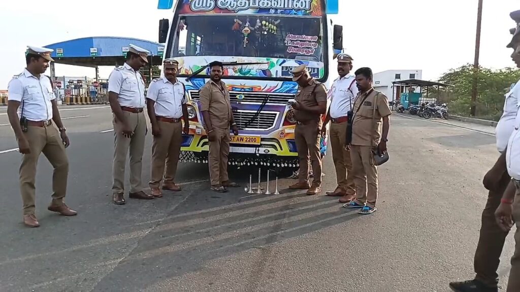 தடை செய்யப்பட்ட காற்று ஒழிப்பான் (ஏர் ஹாரன்) சுங்கச்சாவடியில் சோதனை