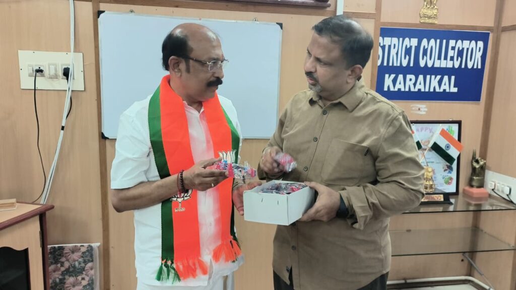 காரைக்காலில் தீபாவளி பட்டாசு வெடிக்கும்போது சிறார்களுக்கு கண் பாதிப்பு ஏற்படாமல் பாதுகாக்க மாவட்ட முழுவதும் 6000 பாதுகாப்பு கண் கண்ணாடிகள் வழங்கும் திட்டத்தை மாவட்ட ஆட்சியர் ரவி பிரகாஷ் சட்டமன்ற உறுப்பினர் ஜி.என். எஸ் ராஜசேகர் அவர்களிடம் வழங்கி தொடங்கி வைத்தார்.