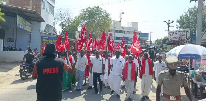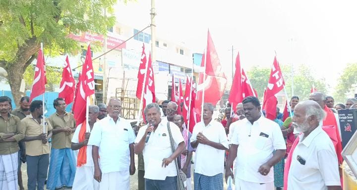 ரோட்டில் அமர்ந்து மறியல் மேற்கொண்டதால், அந்தப்பகுதியில் சில நேரம் போக்குவரத்து பாதிக்கப்பட்டது. போராட்டத்திற்கு எம். நடராஜன் தலைமையேற்று, எஸ். பெரியசக்கரை (AITUC) மற்றும் CITU மாவட்ட நிர்வாகிகள் முன்னிலை வகித்தனர். ஆலங்குளம் போலீசார் பாதுகாப்பு பணியில் ஈடுபட்டனர்.