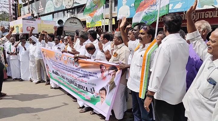 மகாத்மா பெயரை மாற்றியமைக்க எதிர்ப்பு தெரிவித்து கண்டன ஆர்ப்பாட்டம்