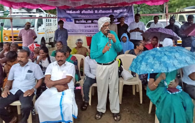 மக்கள் சிவில் உரிமை கழக மாவட்ட தலைவர் பாதர் செல்வராஜ் தலைமை வகித்தார். இக்கூட்டத்தில் தமிழ்நாடு இஸ்லாமிய கூட்டமைப்பின் சார்பாக மாநில தலைமை ஒருங்கிணைப்பாளர் தூத்துக்குடி சம்சுதீன் கண்டன உரை நிகழ்த்தினார். மாநில துணைச் செயலாளர் மற்றும் தமிழக வாழ்வுரிமைக் கட்சி மாவட்ட செயலாளர் கிதர் பிஸ்மி கண்டன உரை நிகழ்த்தினார்.