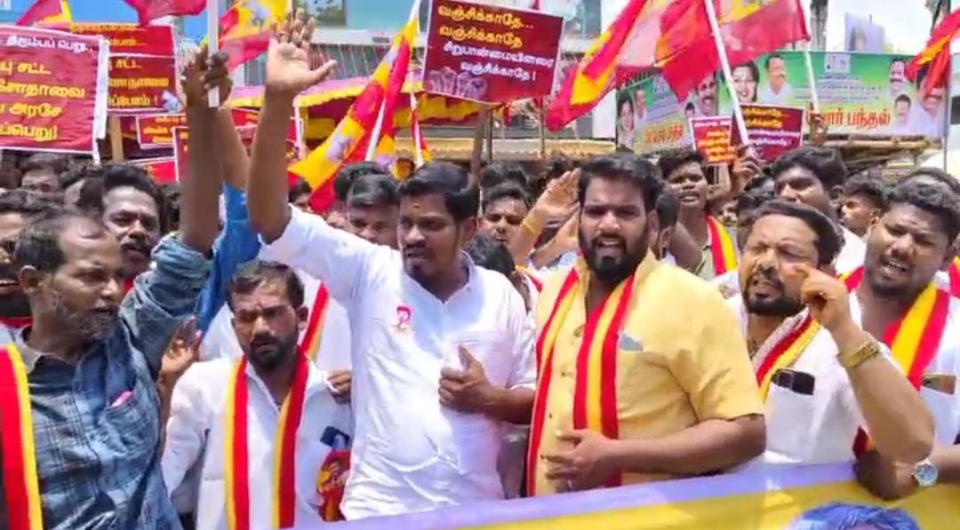 வக்பு வாரிய சட்ட திருத்தத்தை எதிர்த்து தமிழக வெற்றி கழகம் ஆர்ப்பாட்டத்தில் த.வெ.க.வினருக்கும், காவல் துறைக்கும் கடும் வாக்குவாதம் நடைபெற்றது.
