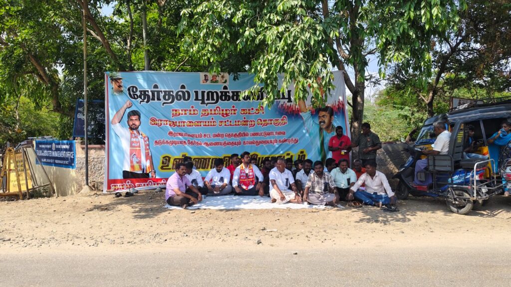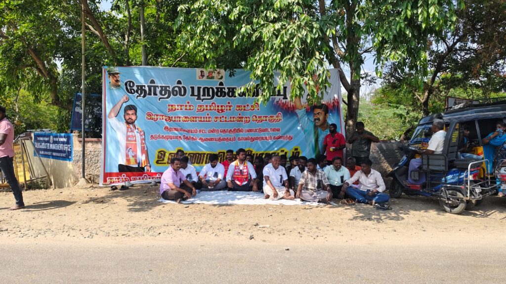 திமுக பிரமுகர்களிடம் இருந்து 99000ரூபாய் பறிமுதல் செய்யப்பட்டு நான்கு பேர் மீது வழக்கு பதிவு செய்யப்பட்டுள்ளது பணம் பட்டுவாடா செய்வதை தொடர்ந்து தடுக்க முடியாத தேர்தல் அதிகாரிகளையும் காவல்துறையும் கண்டித்து நாம் தமிழர் கட்சி வேட்பாளர் தேர்தல் புறக்கணிப்பு என்று கூறி வட்டாட்சியர் அலுவலகம் முன்பு உண்ணாவிர போராட்டத்தில் ஈடுபட்டு வருகிறார் இதனால் இராஜபாளையம் பகுதியில் பரபரப்பு ஏற்பட்டுள்ளது