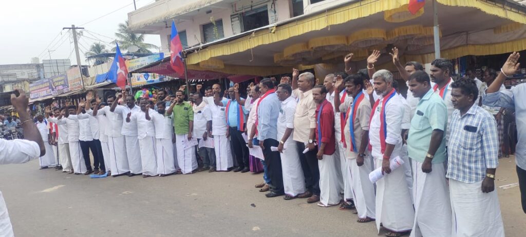 தஞ்சாவூர் மாவட்டம் திருவோணம் வட்டார வளர்ச்சி அலுவலகத்தில் பணிபுரியும் வட்டார வளர்ச்சி அலுவலர் சாமிநாதன், மற்றும் துணை வட்டார வளர்ச்சி அலுவலர் தணிக்கை சிவ.சண்முகம் ஆகிய இருவரும் பல்வேறு ஊழல் முறைகேடு செய்ததாக கூறியும் சாதிய பாகுபாடுடன் செயல்படுவதாக கூறி விடுதலை சிறுத்தைகள் கட்சி சார்பில் அக்கட்சி நிர்வாகிகள் திரண்டு ஊரணிபுரம் கடைத்தெருவில் கண்டன ஆர்ப்பாட்டம் இன்று நடைபெற்றது.