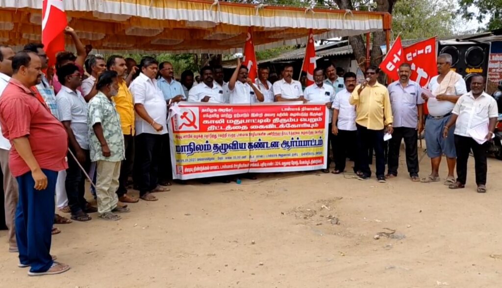 டாஸ்மாக் கடைகளில் 22 ஆண்டுகள் பணி புரியும் ஊழியர்களை பணி நிரந்தரம் செய்து அரசு ஊழியர்களுக்கு இணையான அனைத்து சலுகைகளையும் வழங்க வேண்டும். டாஸ்மாக் ஊழியர்களுக்கு நீதிமன்ற வழங்கிய நிரந்தர பணி தீர்ப்பு உத்தரவை அரசு மேல்முறையீடு செய்யாமல் உடனடியாக அமல்படுத்த வேண்டும. 50 ஆயிரம் கோடி வருமானத்தை அள்ளித்தரும் டாஸ்மாக் ஊழியருக்கு 40 சதவீத தீபாவளி போனஸ் வழங்க வேண்டும் டாஸ்மாக் ஊழியர்களுக்கு இ எஸ் ஐ மருத்துவ திட்டத்தை அமல்படுத்த வேண்டும் உள்ளிட்ட ஐந்து அம்ச கோரிக்கைகளை வலியுறுத்தி கண்டன ஆர்ப்பாட்டம் நடைபெற்றது.