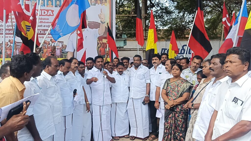 மதுரை மாவட்டம் உசிலம்பட்டி இந்தியன் கேஸ் ஏஜென்சி அலுவலகம் எதிரில் திமுக சார்பில் தேமுதிக,காங்கிரஸ்,விசிக, இந்திய கம்யூனிஸ்ட், மார்க்சிஸ்ட் கட்சிகள் இணைந்து திமுக நகர செயலாளர் தங்கப்பாண்டியன் தலைமையில் முன்னாள் உசிலம்பட்டி எம்எல்ஏ அய்யப்பன் முன்னிலையில் ஒன்றிய பாஜக அரசு கண்டித்து சிலிண்டர் தட்டுப்பாட்டையும் பாரதிய ஜனதா அரசை கண்டித்தும் கண்டன ஆர்ப்பாட்டத்தில் ஈடுபட்டனர்.