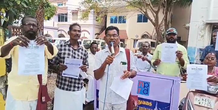 100 நாள் மகாத்மா காந்தி வேலை உறுதியளிப்புத் திட்டத்தில் மகாத்மா காந்தி பெயர் நீக்கப்பட்டதை கண்டித்து தஞ்சை மாவட்டம், பட்டுக்கோட்டையில் ஊராட்சி ஒன்றிய அலுவலகம் முன்பு இன்று ஒன்று திரண்ட மாற்றுத்திறனாளிகள் புதிய மசோதாவின் சட்ட நகலை கிழித்தெறிந்து தங்களது எதிர்ப்பை பதிவு செய்தனர்.