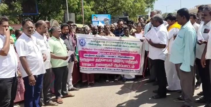 ஊராட்சி செயலாளர்களை தமிழக அரசின் ஓய்வூதிய திட்டத்தின் இணைத்து ஊராட்சி ஒன்றிய பதிவரை எழுத்தாருக்கு பொருந்தும் அனைத்து சலுகைகளும் வழங்கிட வேண்டும் என்று கூறியும் உட்பட16 அம்ச கோரிக்கைகளை வலியுறுத்தி ஆர்ப்பாட்டம் நடைபெற்றது.