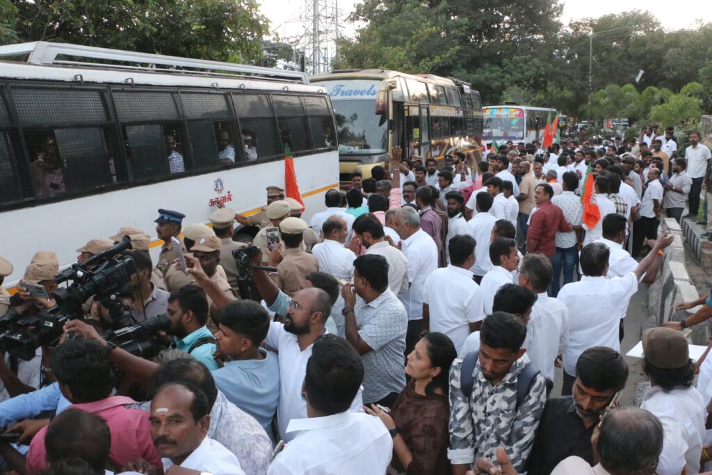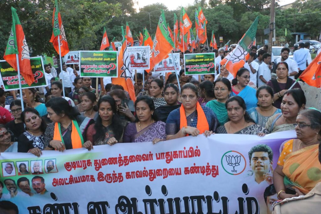 சி.பி.ராதாகிருஷ்ணன் வருகையின் விவகாரத்தில் நடவடிக்கை எடுக்க கோரி ஆர்ப்பாட்டம்..,