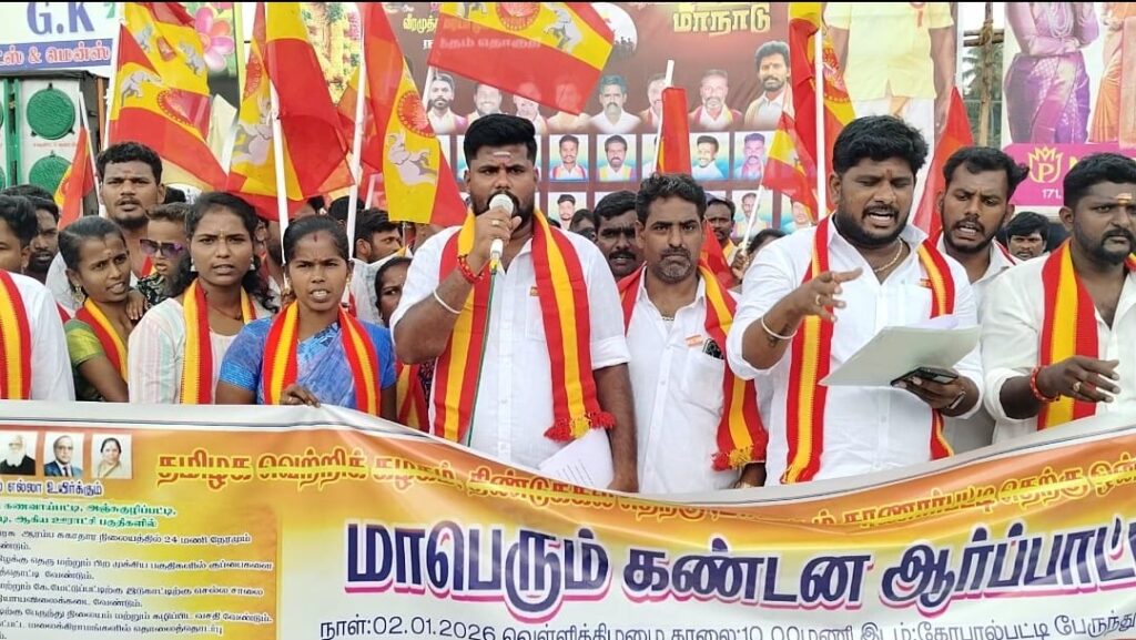 திண்டுக்கல் மாவட்டம், கோபால்பட்டி பகுதியில் அடிப்படை வசதிகளை உடனடியாக ஏற்படுத்தக் கோரியும், பல்வேறு உள்ளூர் பிரச்சினைகளைத் தீர்க்கக் கோரியும் தமிழக வெற்றிக் கழகம் (தவெக) சார்பில் கோபால்பட்டி பேருந்து நிலையம் அருகே மாபெரும் கண்டன ஆர்ப்பாட்டம் நடைபெற்றது.