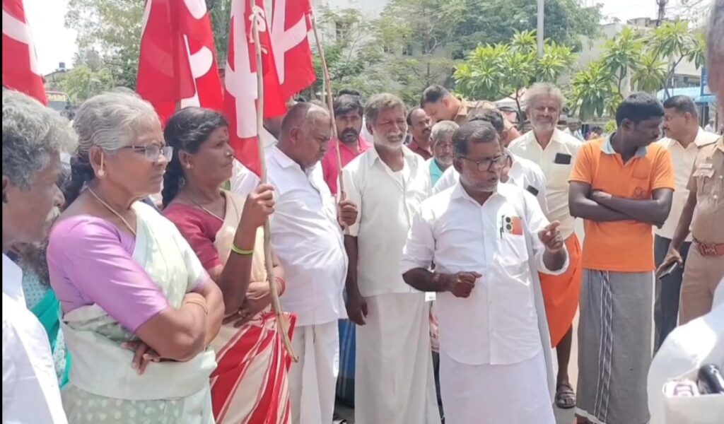 ஆட்டின் உரிமையாளர் சாமிநாத காவல் நிலையத்தில் புகார் அளித்தனர். சம்பந்தப்பட்டவர்களை கண்டுபிடித்து அவர்கள் மீது நடவடிக்கை எடுத்து இழப்பீடு கேட்டு மனு அளிக்கப்பட்டது. ஆனால் காவல்துறையினர் 35 நாட்கள் ஆகியும் எந்த ஒரு நடவடிக்கையும் எடுக்காத காரணத்தால் காவல்துறையினரை கண்டித்து தமிழ்நாடு விவசாய சங்க ஒன்றிய செயலாளர் கிருஷ்ணன் மற்றும் மாவட்டச் செயலாளர் மாரியப்பன் ஆகியோ தலைமையில் சார் ஆட்சியில் அலுவலகம் முன்பு விவசாயிகள் முற்றுகையிட்டனர்.